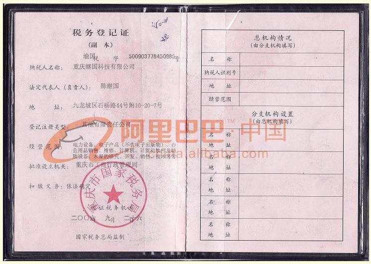 • 税务登记证(国)
